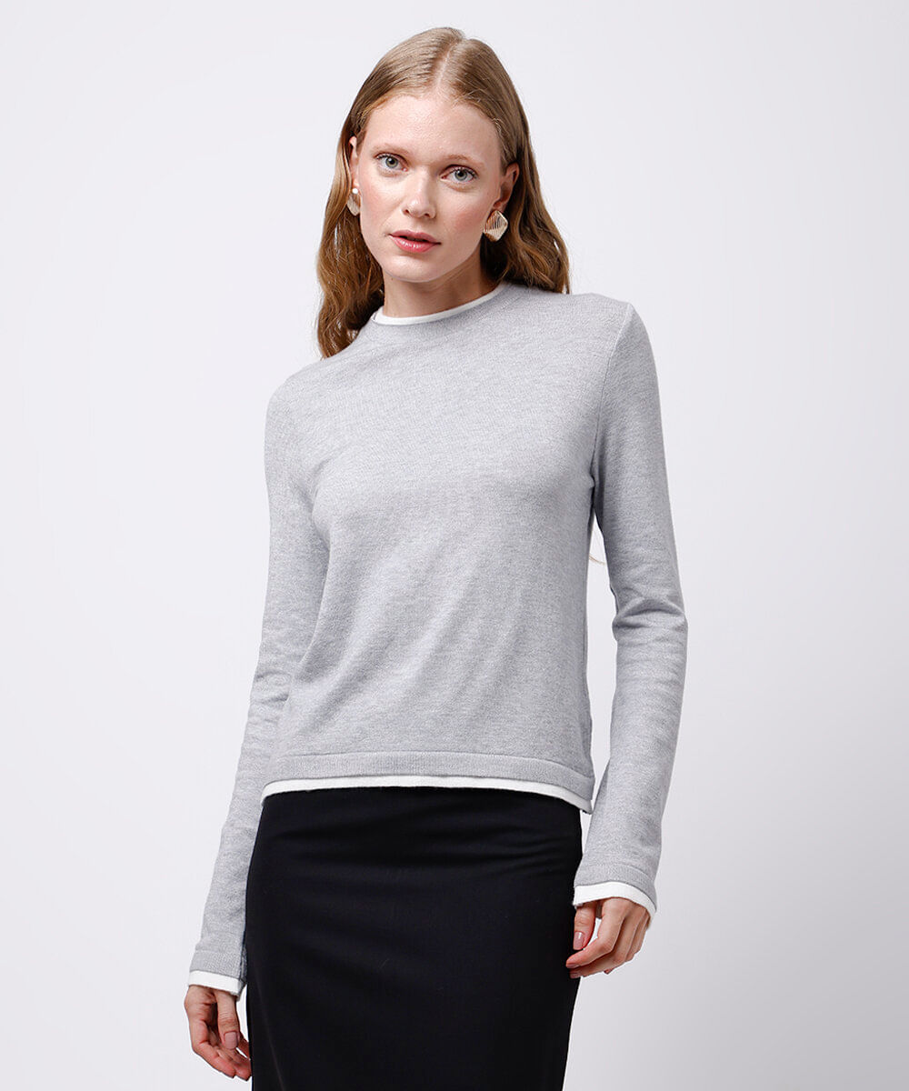 suéter feminino de tricot mindset cinza