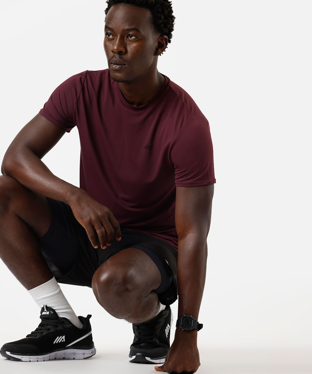 camiseta masculina esportiva ace de poliamida estampada vinho