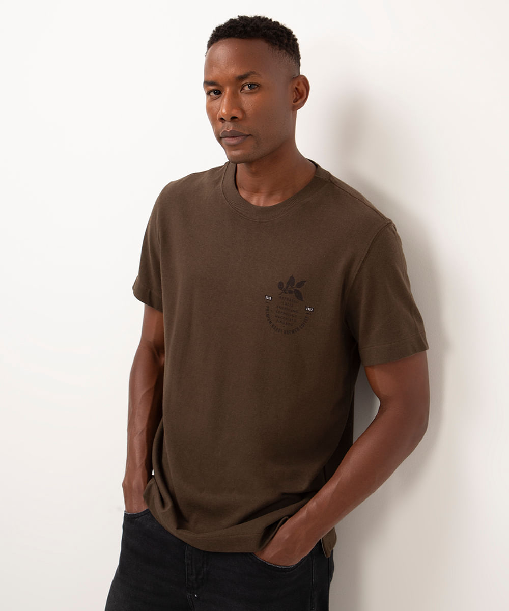 Camiseta masculina marrom triangulo minimalista malha de algodão premium