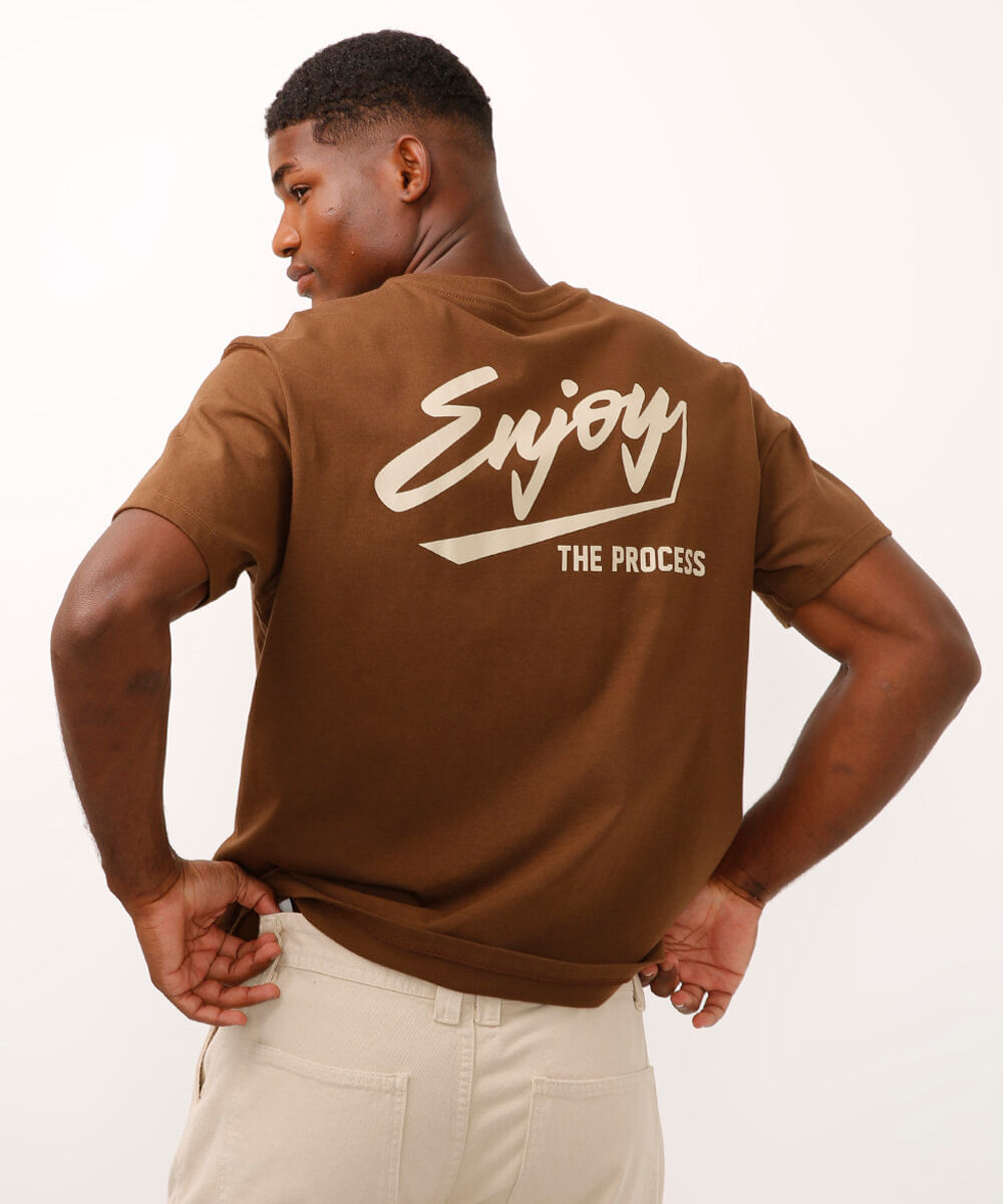 camiseta de algodão decote redondo enjoy marrom
