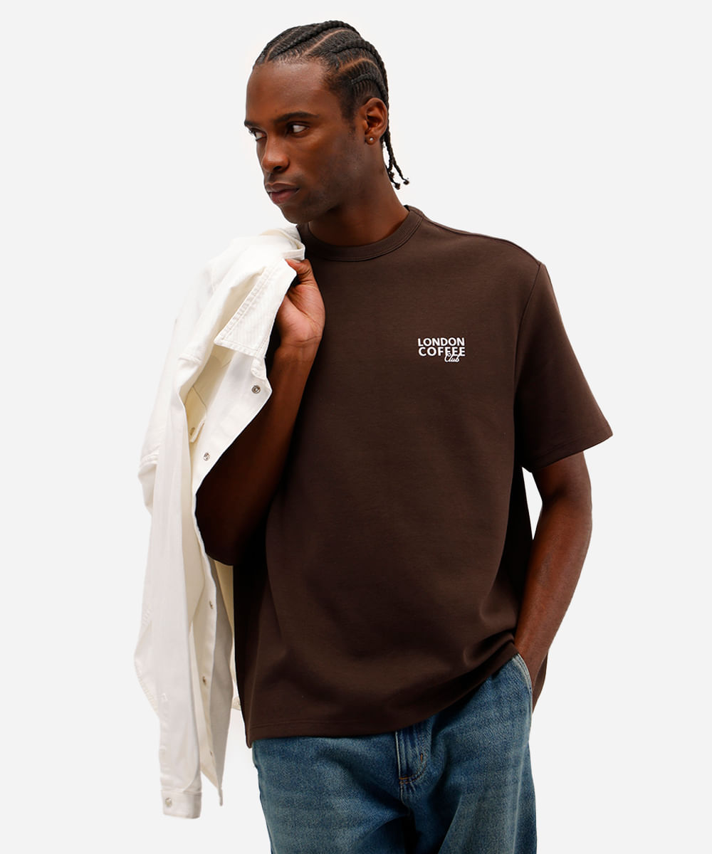 camiseta masculina de algodão london coffee marrom