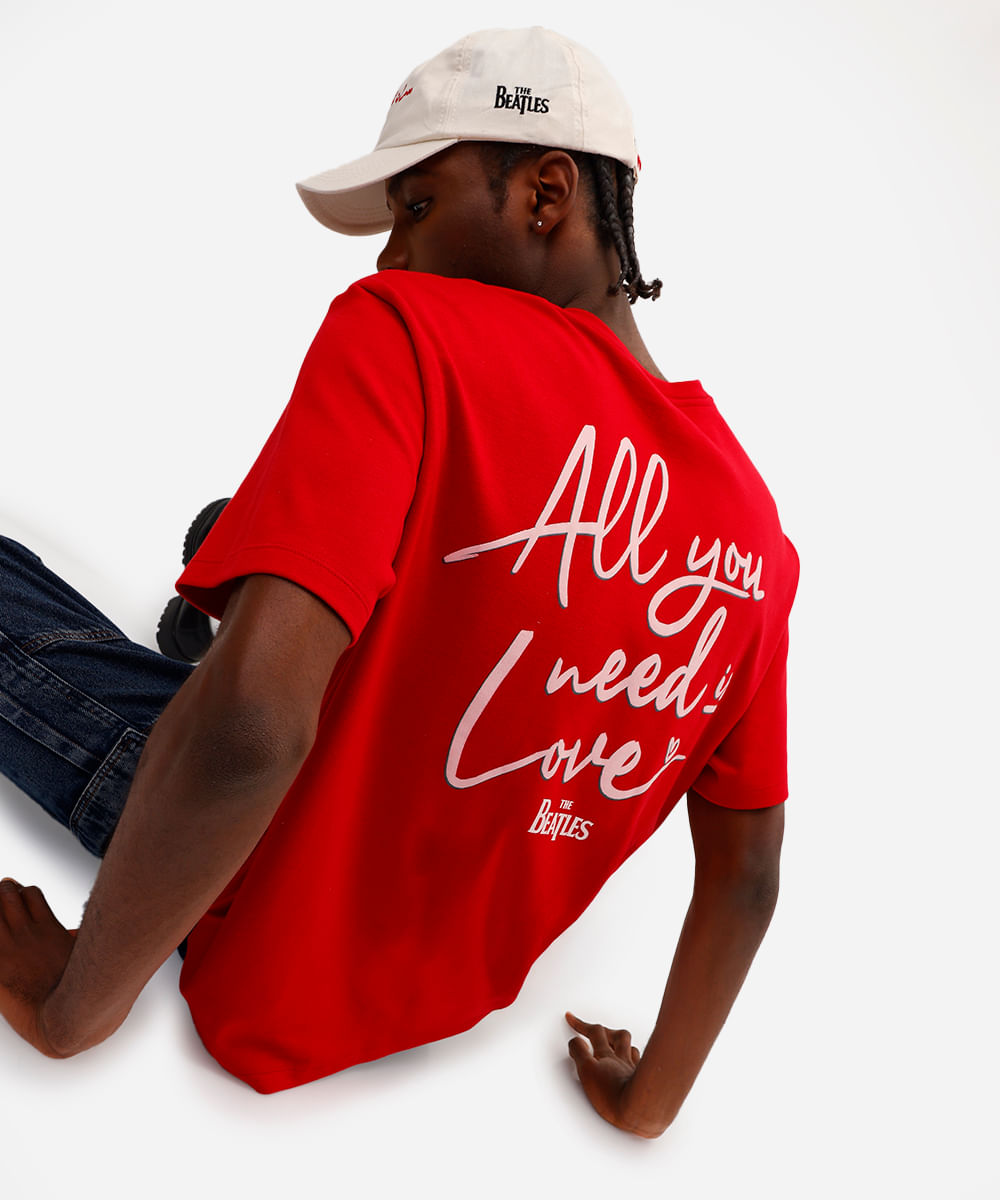 camiseta unissex manga curta all you need is love the beatles vermelha