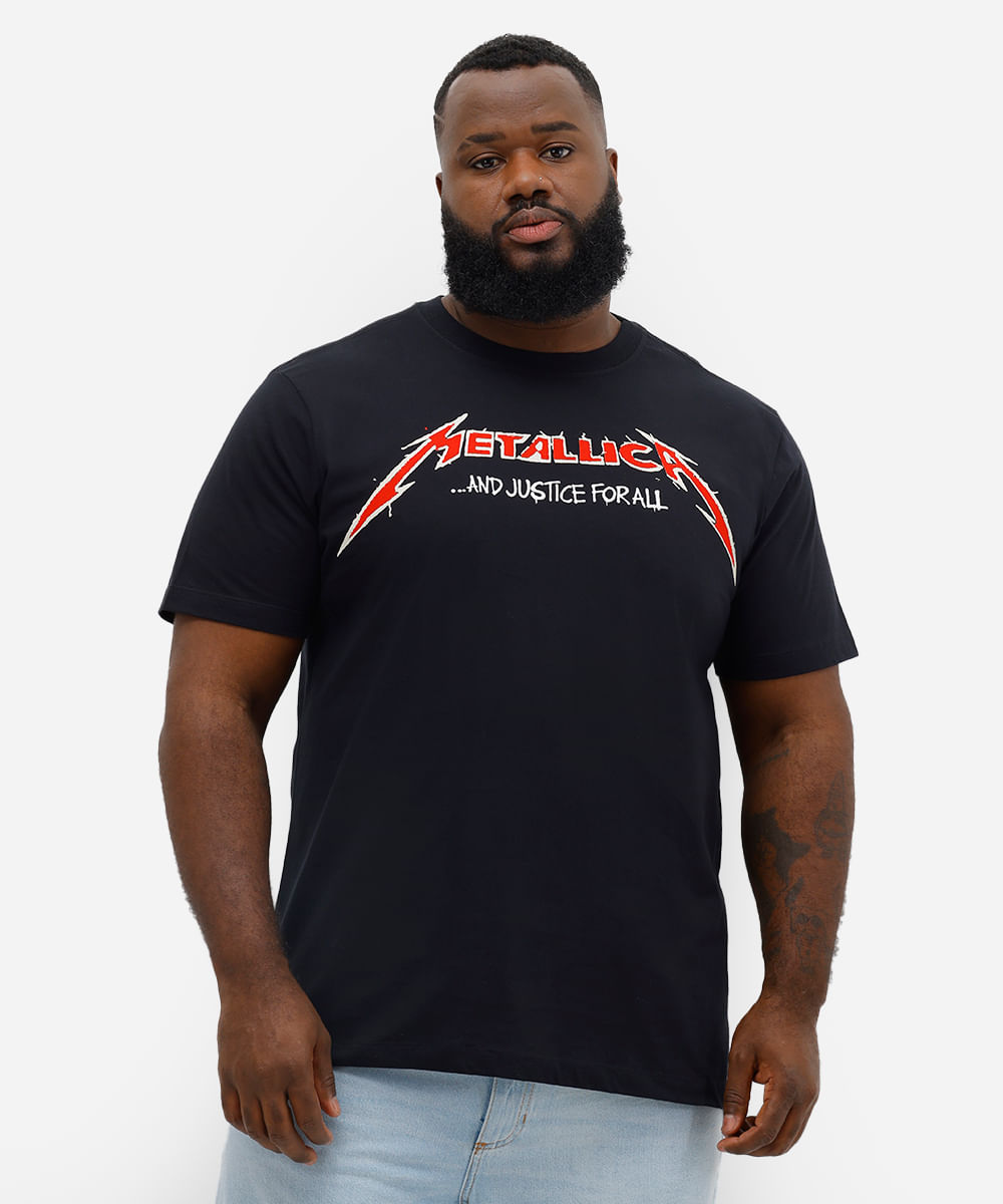 camiseta masculina de algodão metallica plus size preta