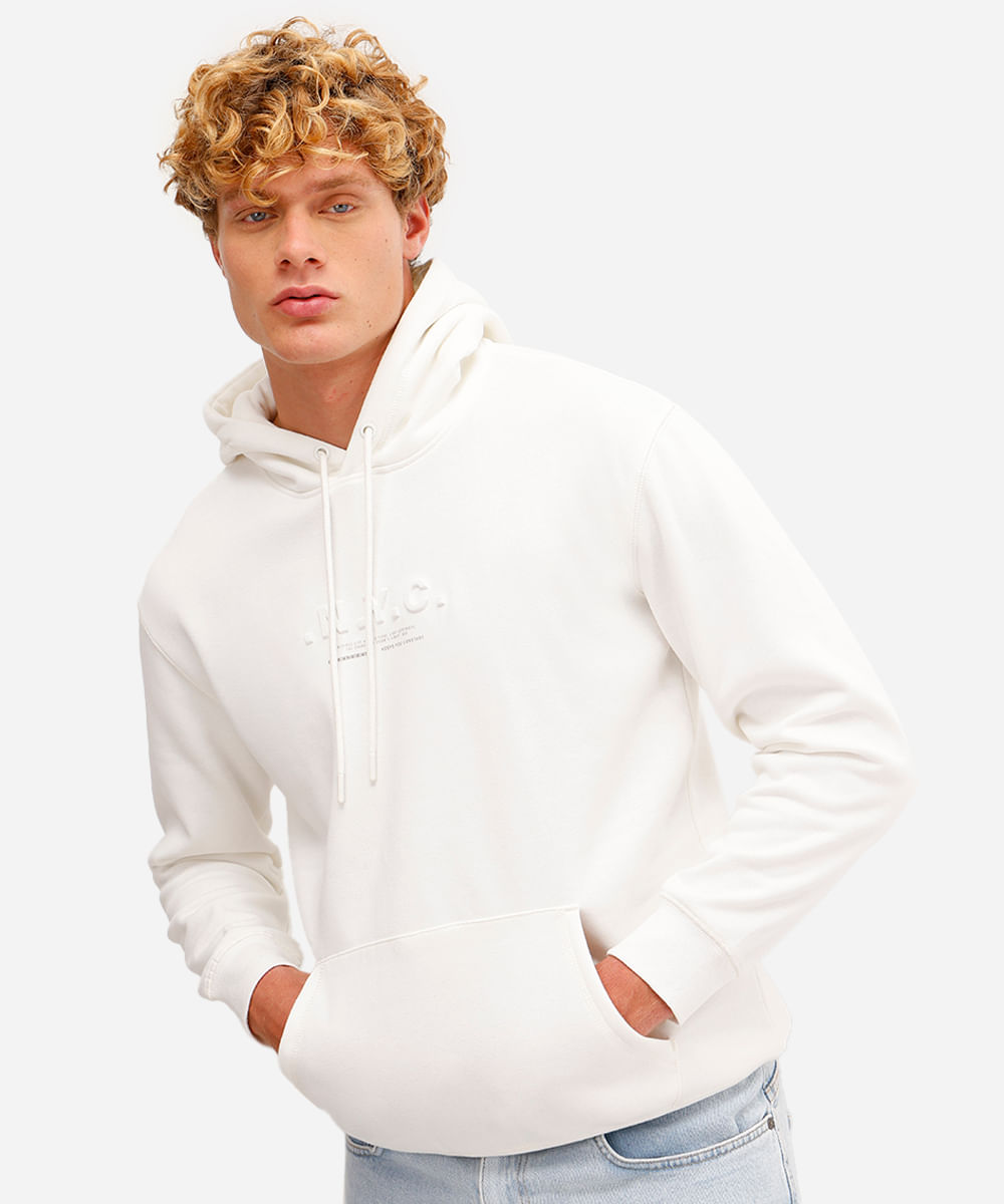 blusão oversized masculino de moletom felpado nyc com capuz off white