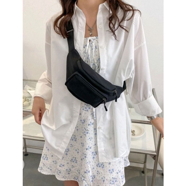 Bolsa Pochete Preta Grande com Zíper, Repartições e Alça regulável Moda Gringa Shein