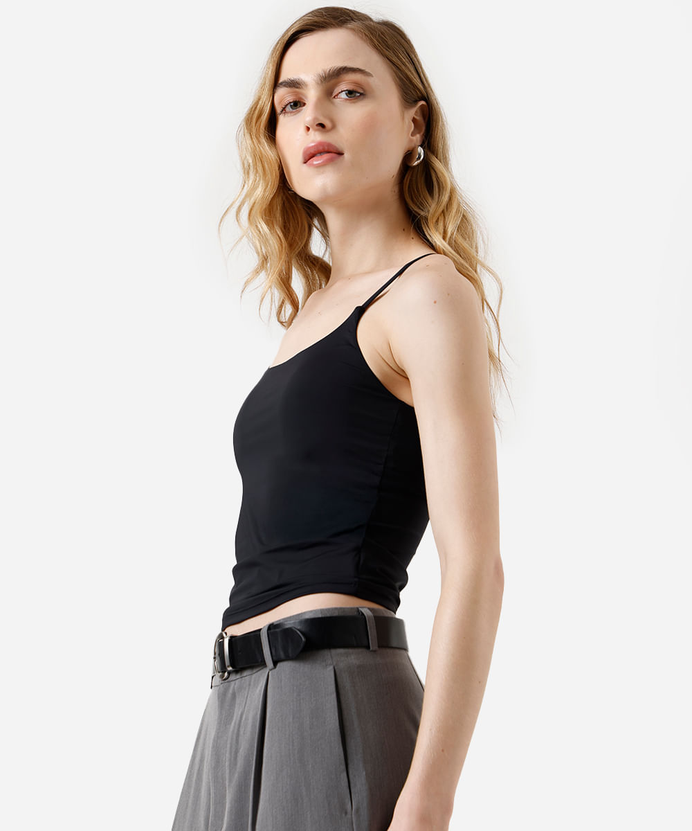 regata básica feminina de poliamida com bojos removíveis preta