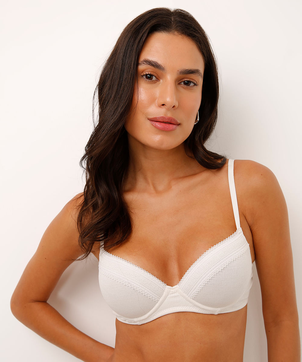 sutiã meia taça canelado com renda off white