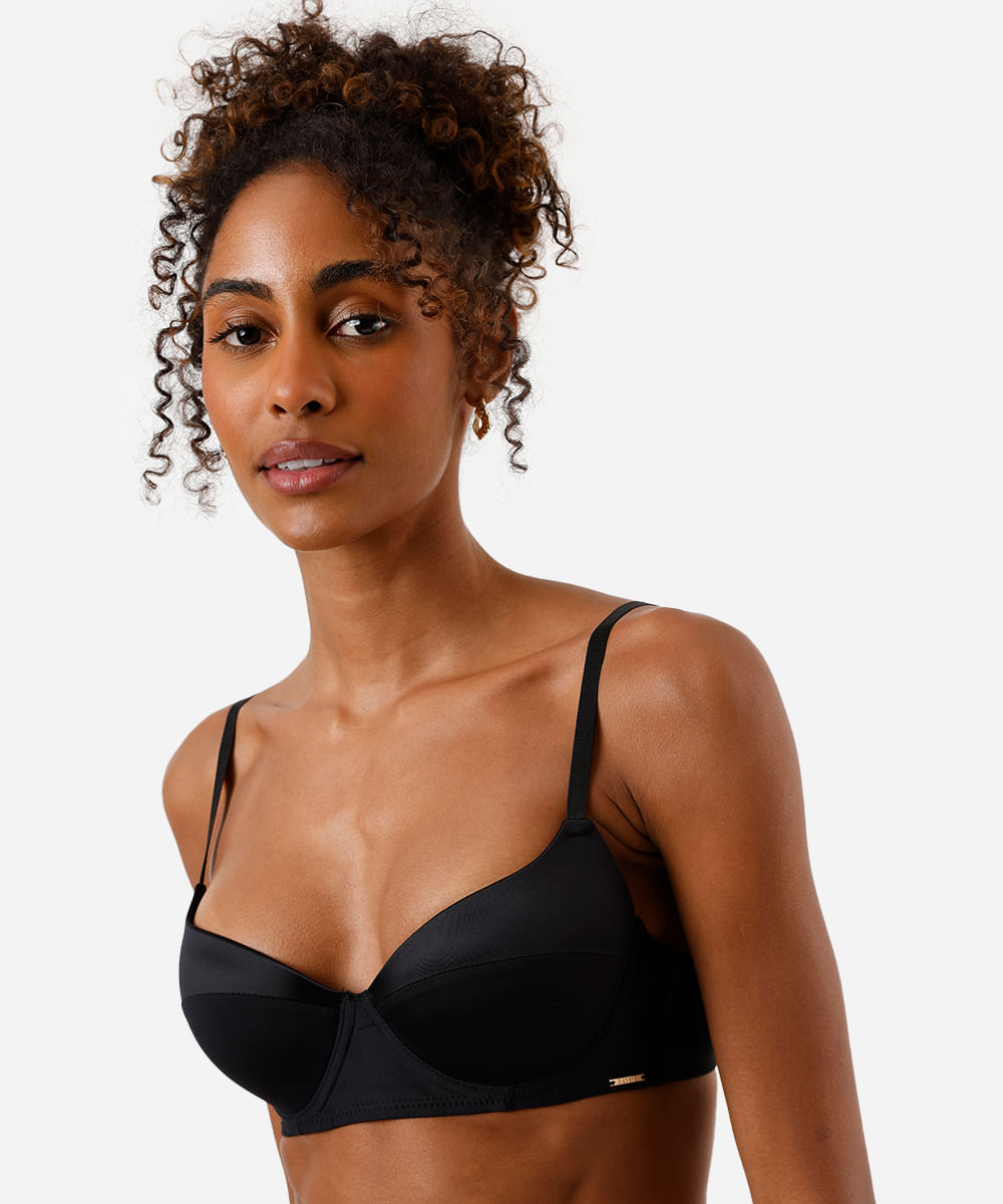 sutiã meia taça com recorte acetinado preto