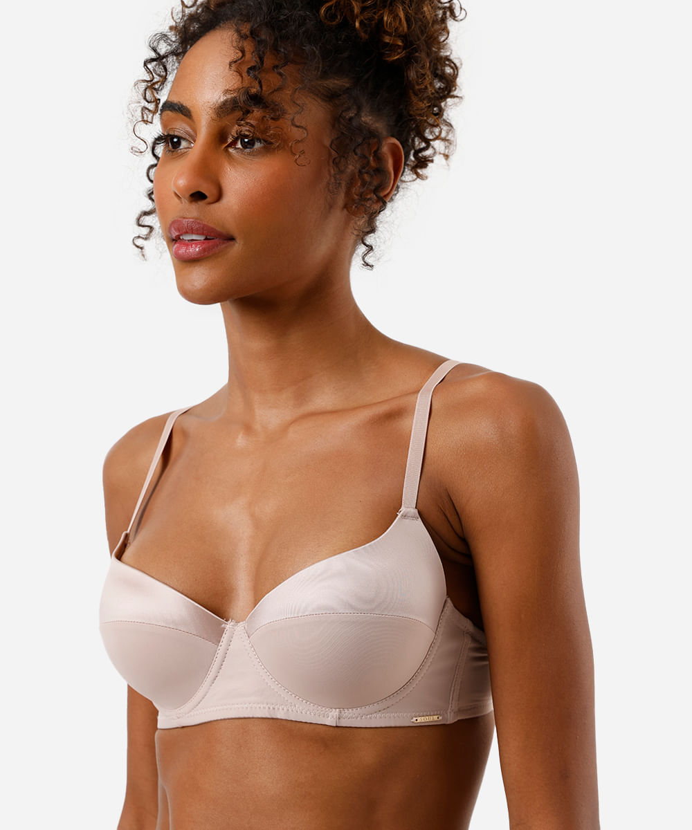 sutiã meia taça com recorte acetinado bege