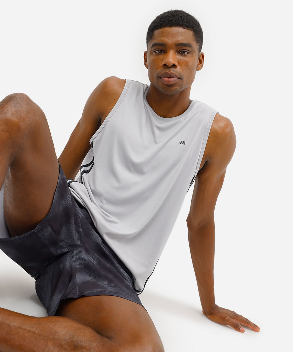 regata masculina com recortes esportiva ace cinza