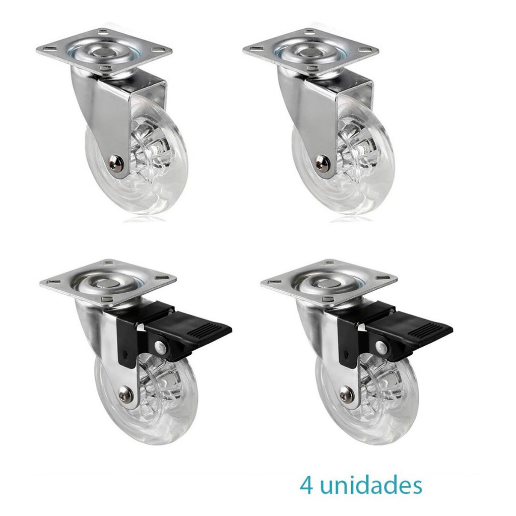 Rodizio Silicone 50mm 4 Peças Para Moveis Com E Sem Trava