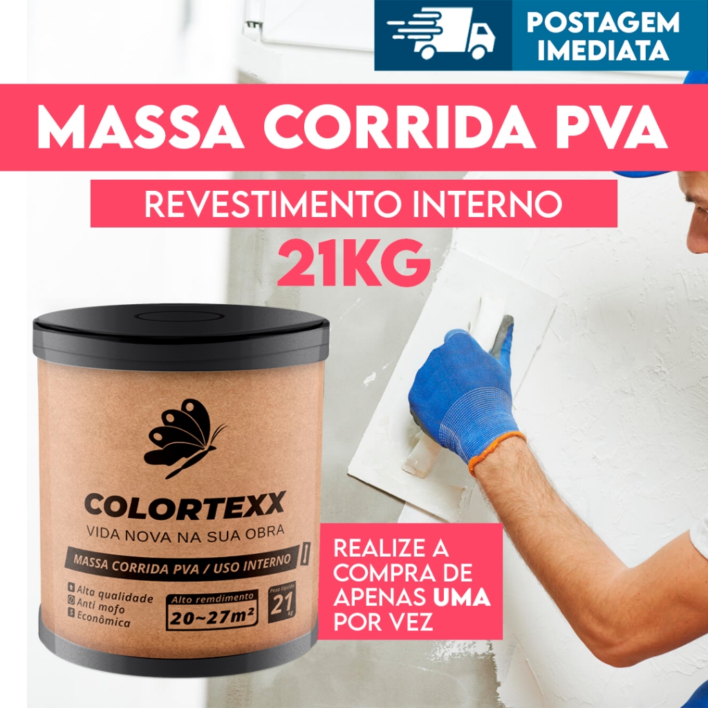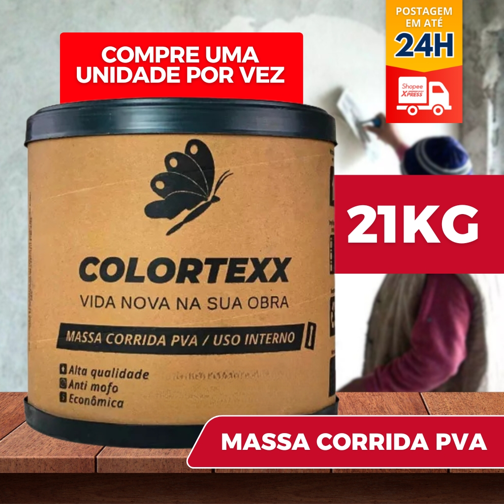 Massa Corrida Premium Pva 21kg Acabamento Nivelador Fácil Aplicação - Colortexx branca parede