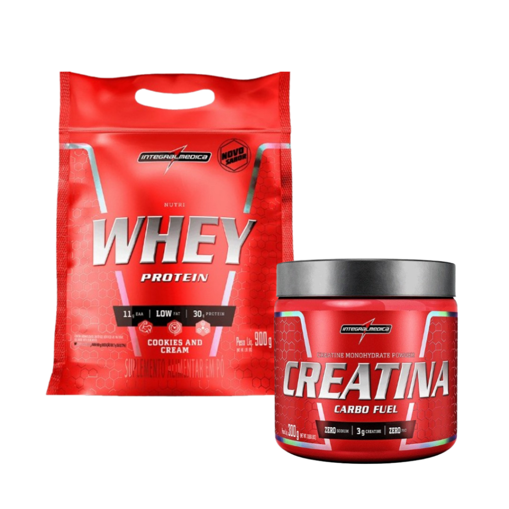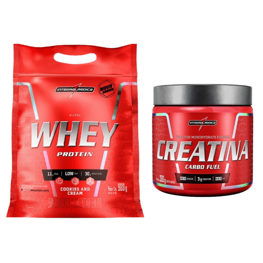 Kit 1x Whey Protein Nutri 900g Refil + 1x Creatina 300g Carbo Fuel Integral Médica