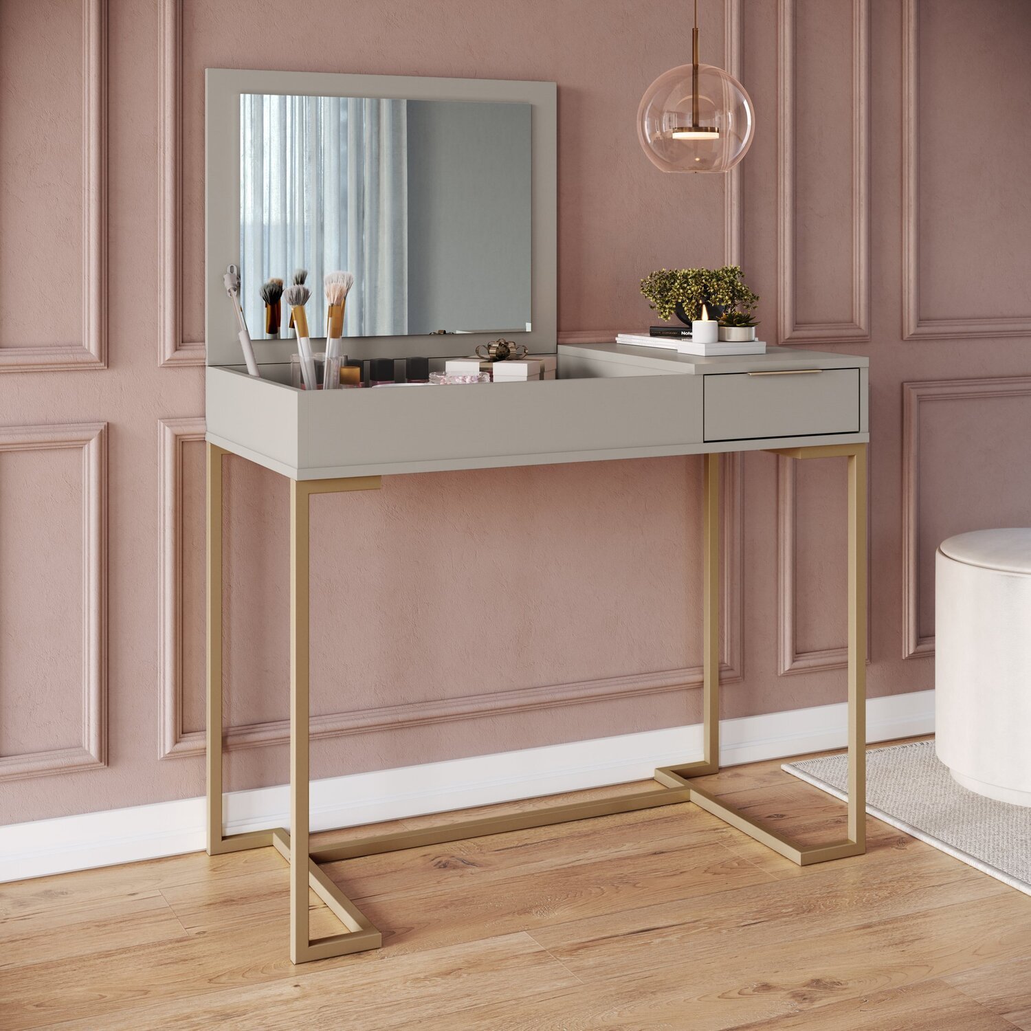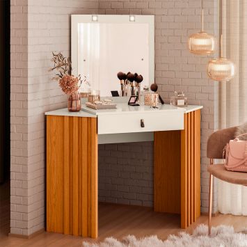 Penteadeira de Canto com Espelho Glitter 1 Gaveta Cinamomo e Off White
