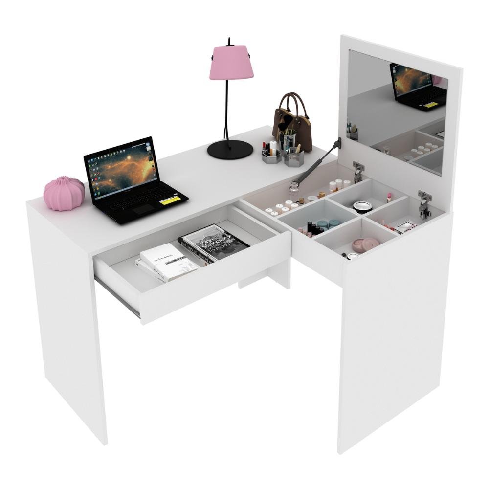 Penteadeira/Escrivaninha de Canto 110cm com Espelho e 1 Gaveta Multimóveis CR25279 - Branco