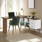 Escrivaninha Mesa de Escritório de Canto 3 Gavetas Branco/Rustic Lisboa Madesa