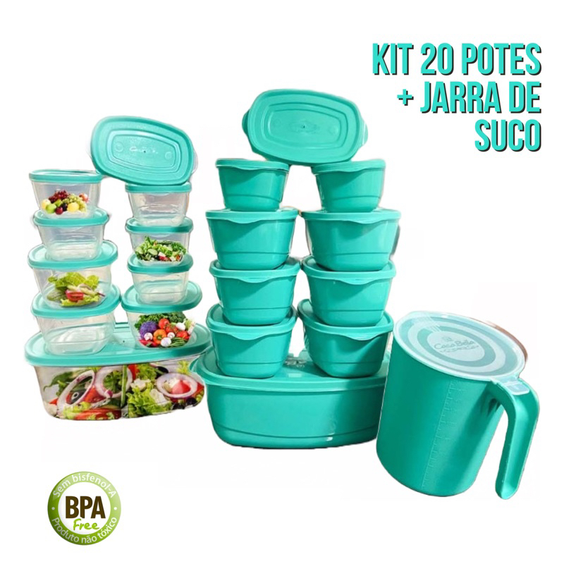 Kit 20 Potes Herméticos Freezer Micro-Ondas Marmitas Fitness Mais Jarra de Suco Água 1800ml