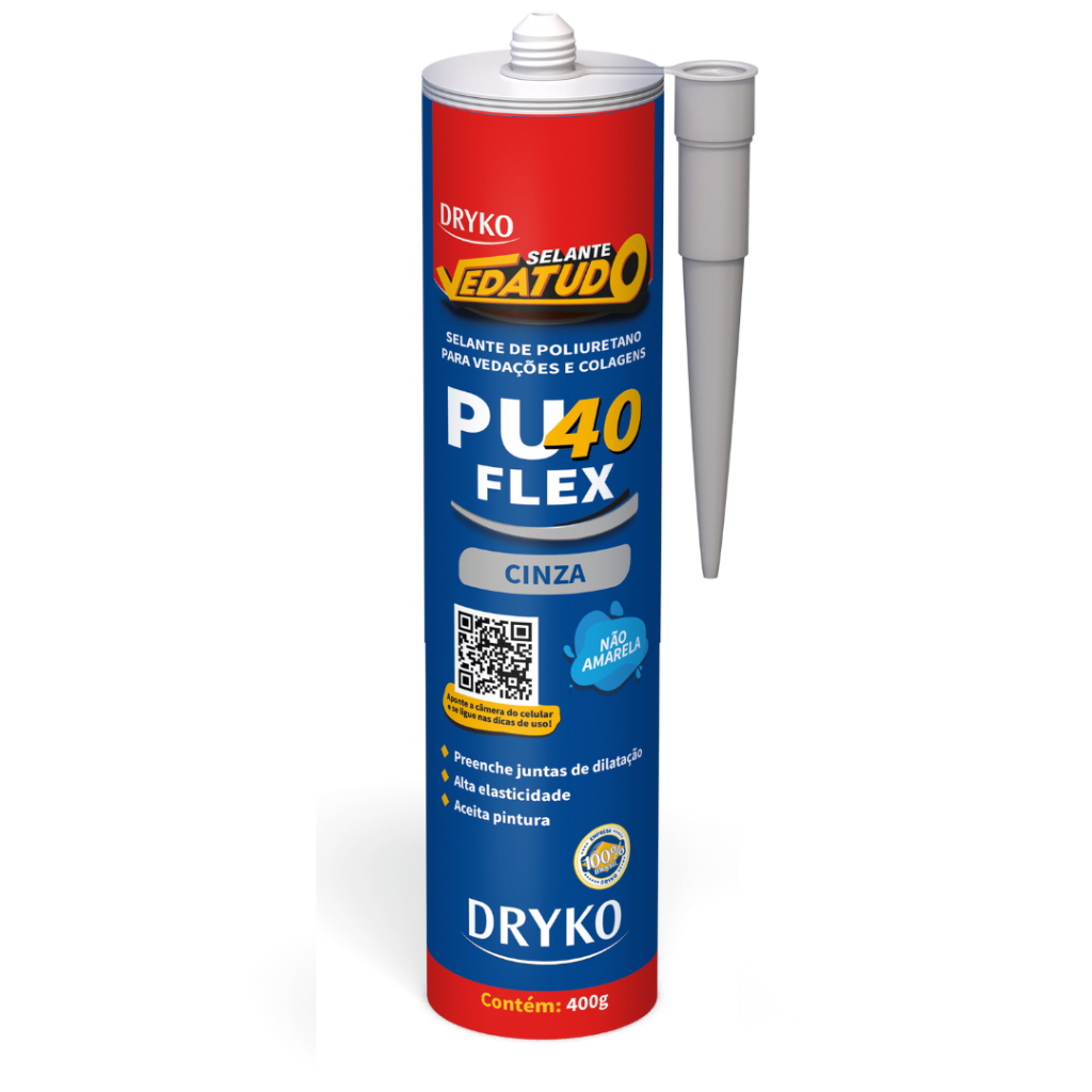 Selante PU Flex 40 Dryko 400 gr Vedatudo calhas e rufos, junta dilatação Cinza, branco ou preto