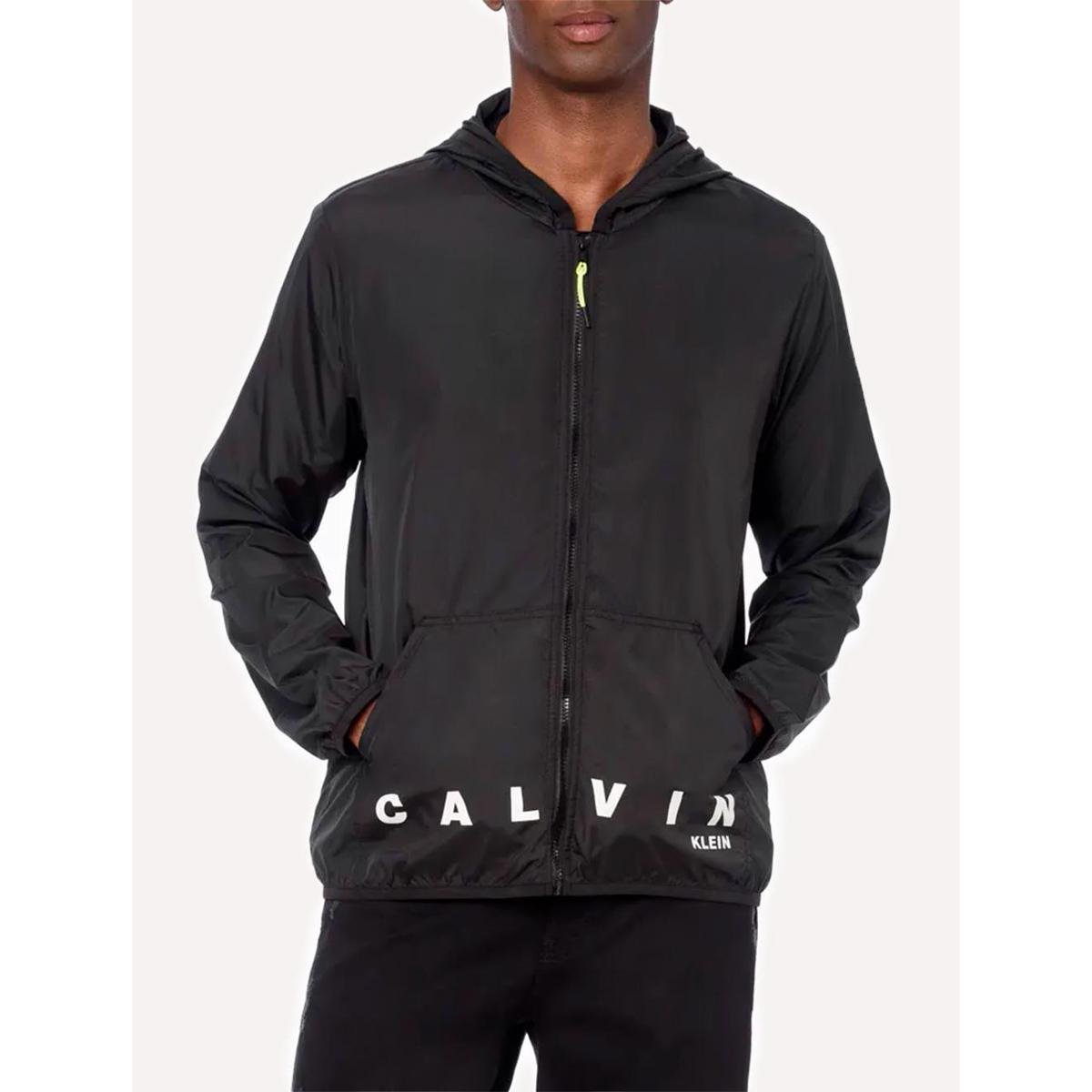 Jaqueta Calvin Klein Jeans Masculina Corta Vento Hoodie Logos Preta