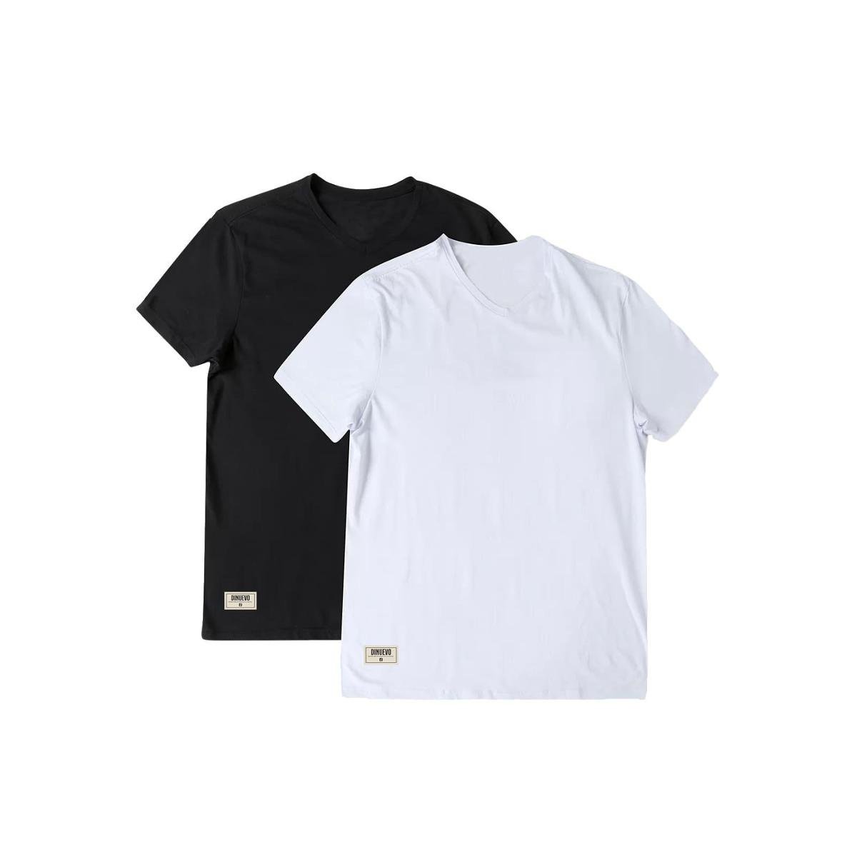 Kit 2 Camisetas Gola V Básicas Preto e Branca Di Nuevo 100% Algodão 30.1 Masculina