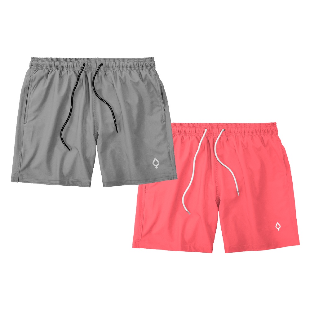 Kit 2 Shorts Resina Bermuda Praia Tactel Liso Masculino Mauricinho