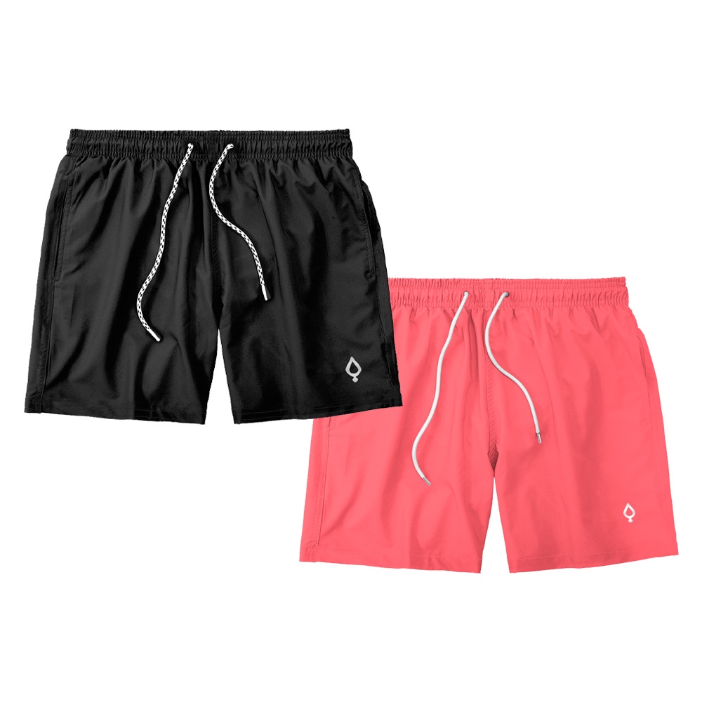 Kit 2 Shorts Resina Bermuda Praia Tactel Liso Masculino Mauricinho Preto/Azul
