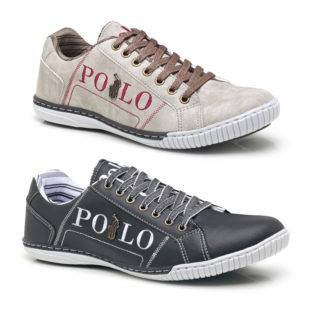Kit 2 Sapatênis Casual Couro Masculino com Cadarço Cano Curto Polo