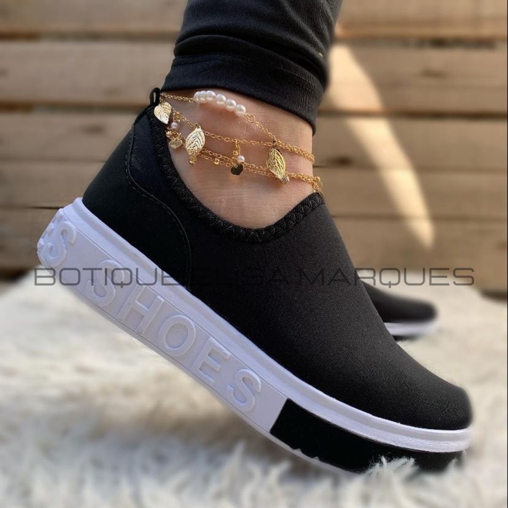 Tenis Meia Shoes Feminino Slip on Calce Facil Confortável Preto