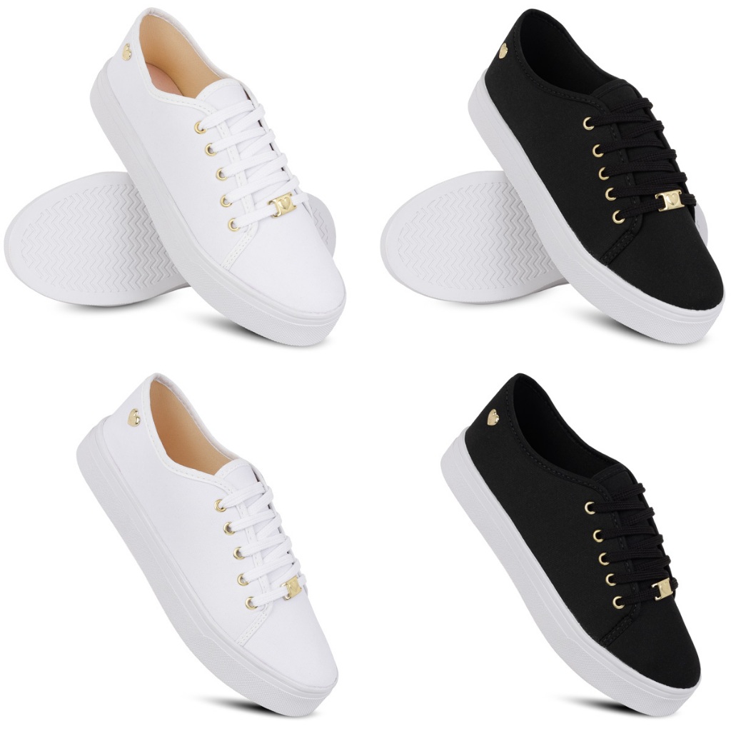 Kit 2 Tênis Feminino Ping Coração Branco preto Confort Casual Confortável Slip On