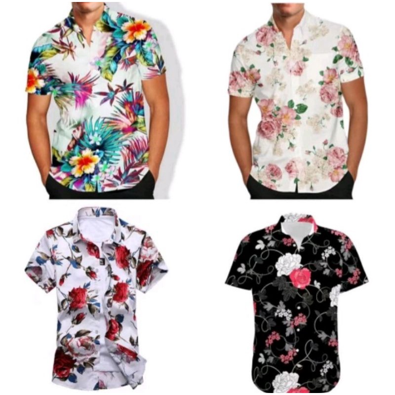 kit 2 camisetas camisas social viscose floral florida de botão manga curta verão