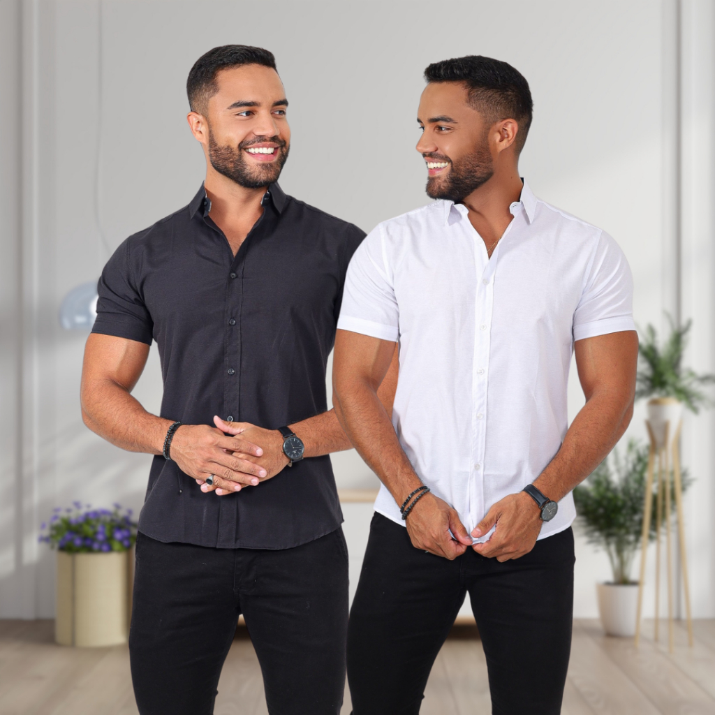 Kit 2 camisas manga curta masculina social slim fit sem bolso algoão luxo premium