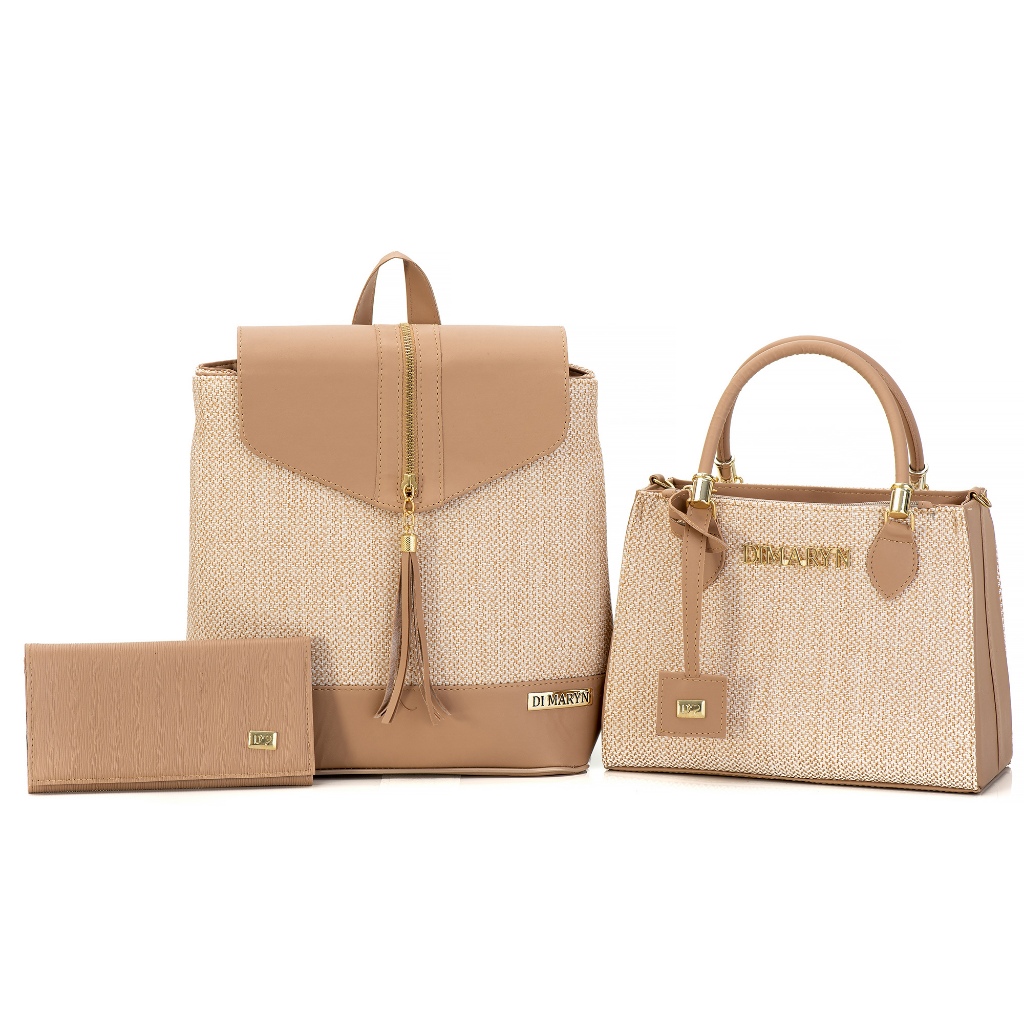 Kit 3 Bolsa Feminina com Carteira Iasmim Prado Mochila Bolsa Média Bolsa Tampa Nude