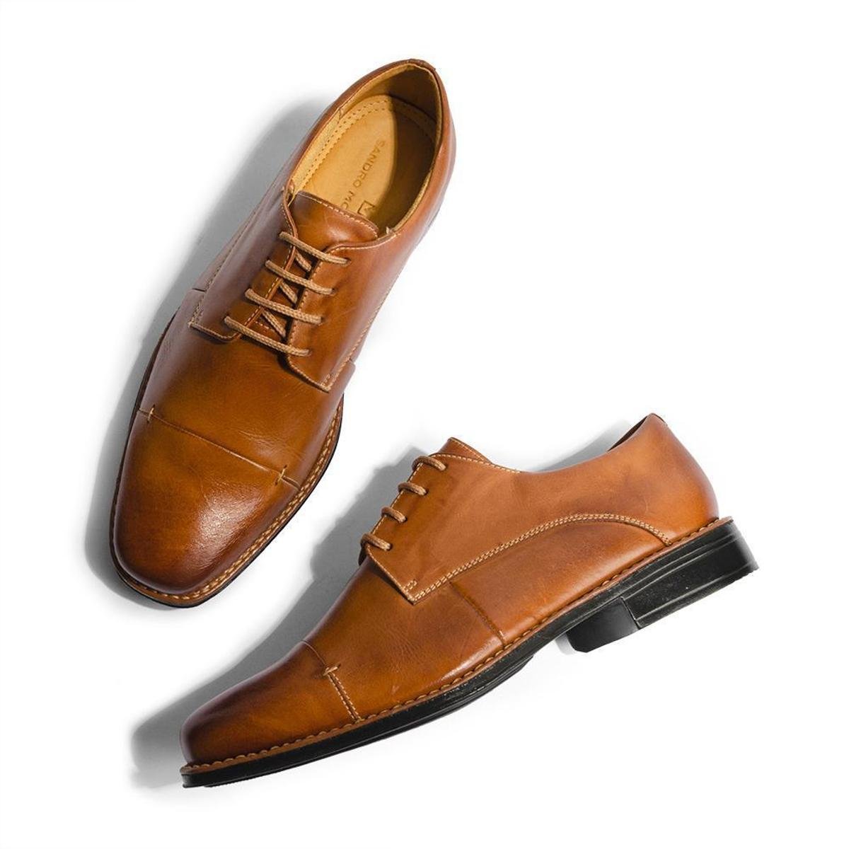 Sapato Social Masculino Anna Andrade Em Couro Bico Redondo Amarrar Casual Trabalho Tendência Café