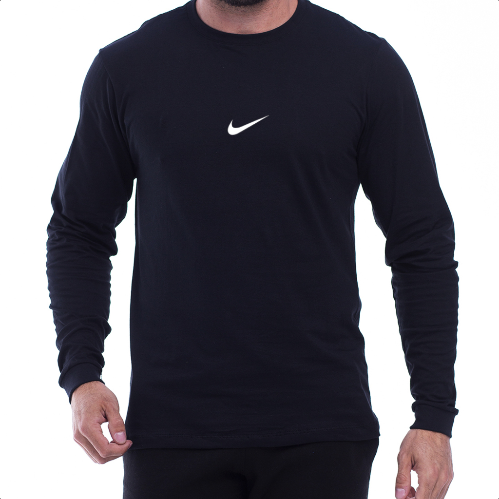 Camiseta Masculina Básica Manga Longa Conforto Estilo Slim Fitness Preto