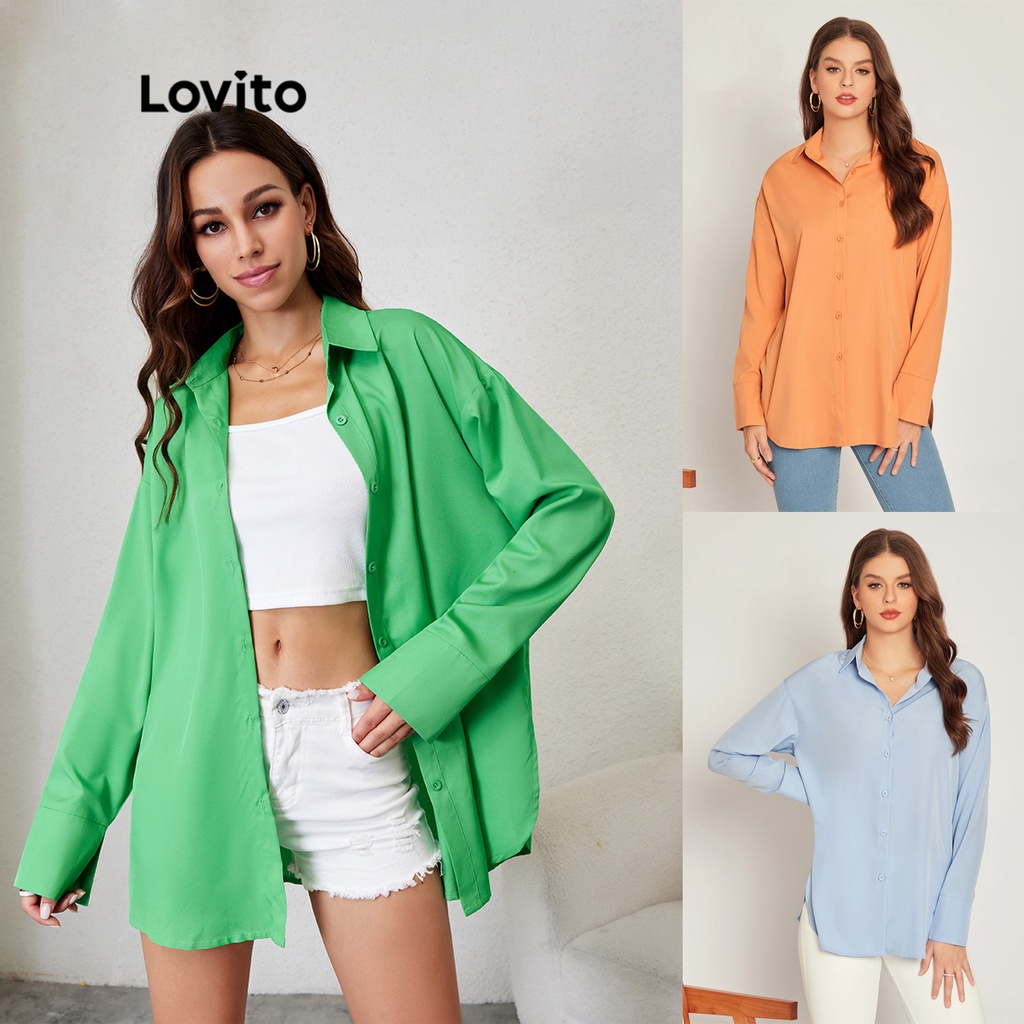 Lovito Blusa Brasil Copa 2022 Casual Lisa Manga Longa Bainha Assimétrica L24LD040 (Verde)