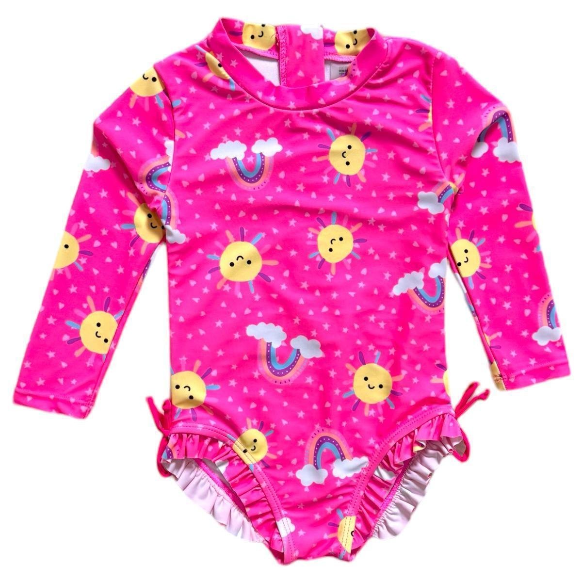 Maiô Infantil Menina Manga Longa Bebe Com Proteção Uv 50 Maio