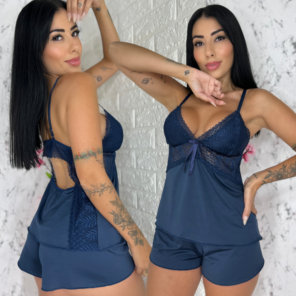 Short Doll Sexy com Renda Confortável Sensual Pijama Linha Noite Roupa de Dormir Kayene - BeLIT Linha Noite