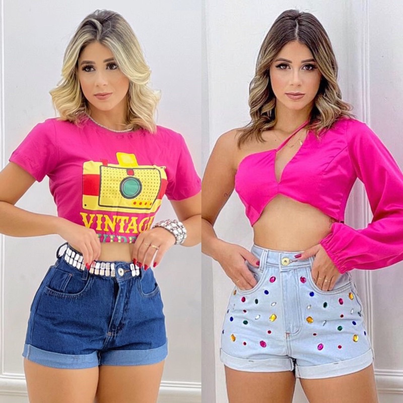 Shorts Jeans Feminino Mom Pedraria Cintura Alta Premium