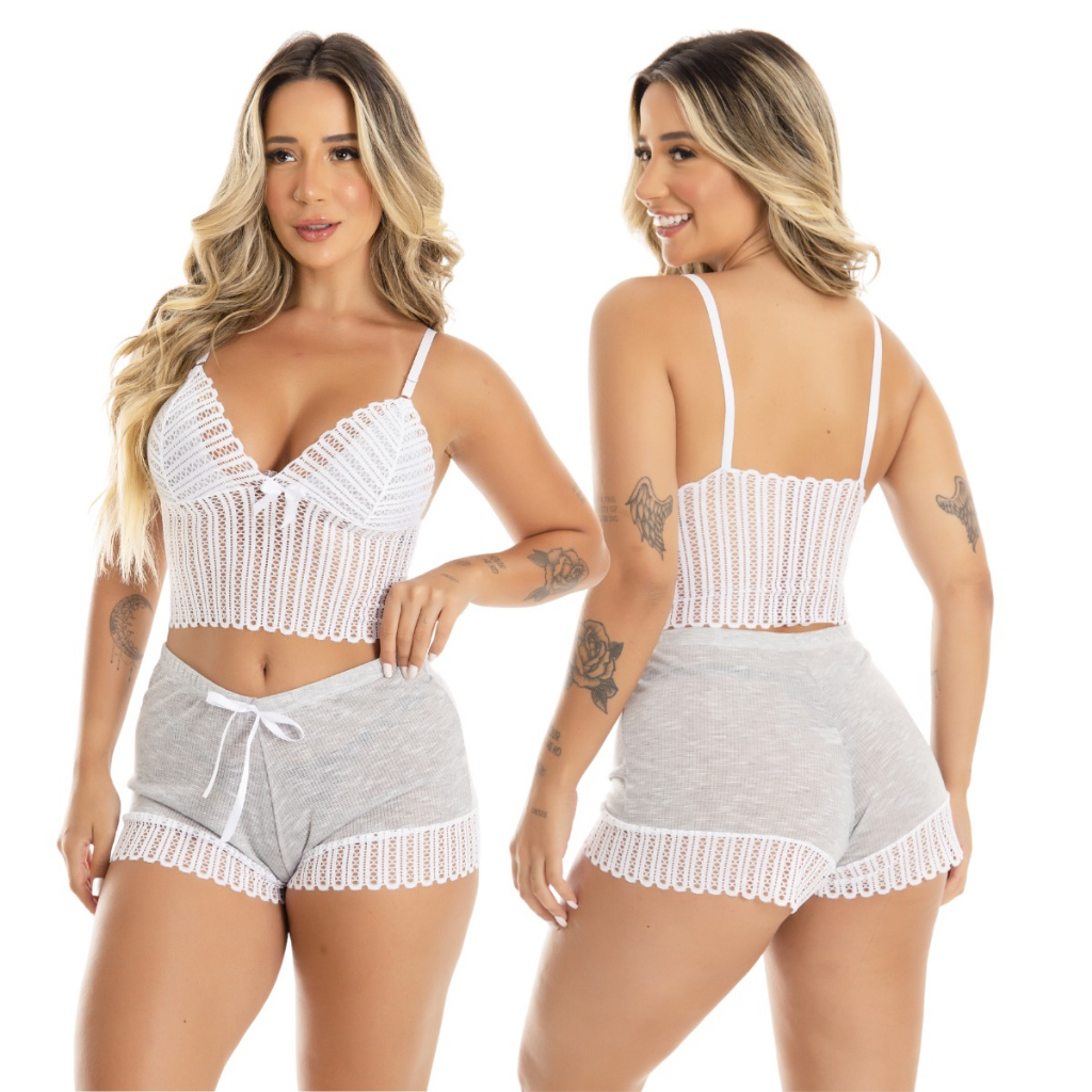 Baby Doll Renda Conjunto Short Pijama Sensual Sem Bojo Lingerie Linha Noite Adulto