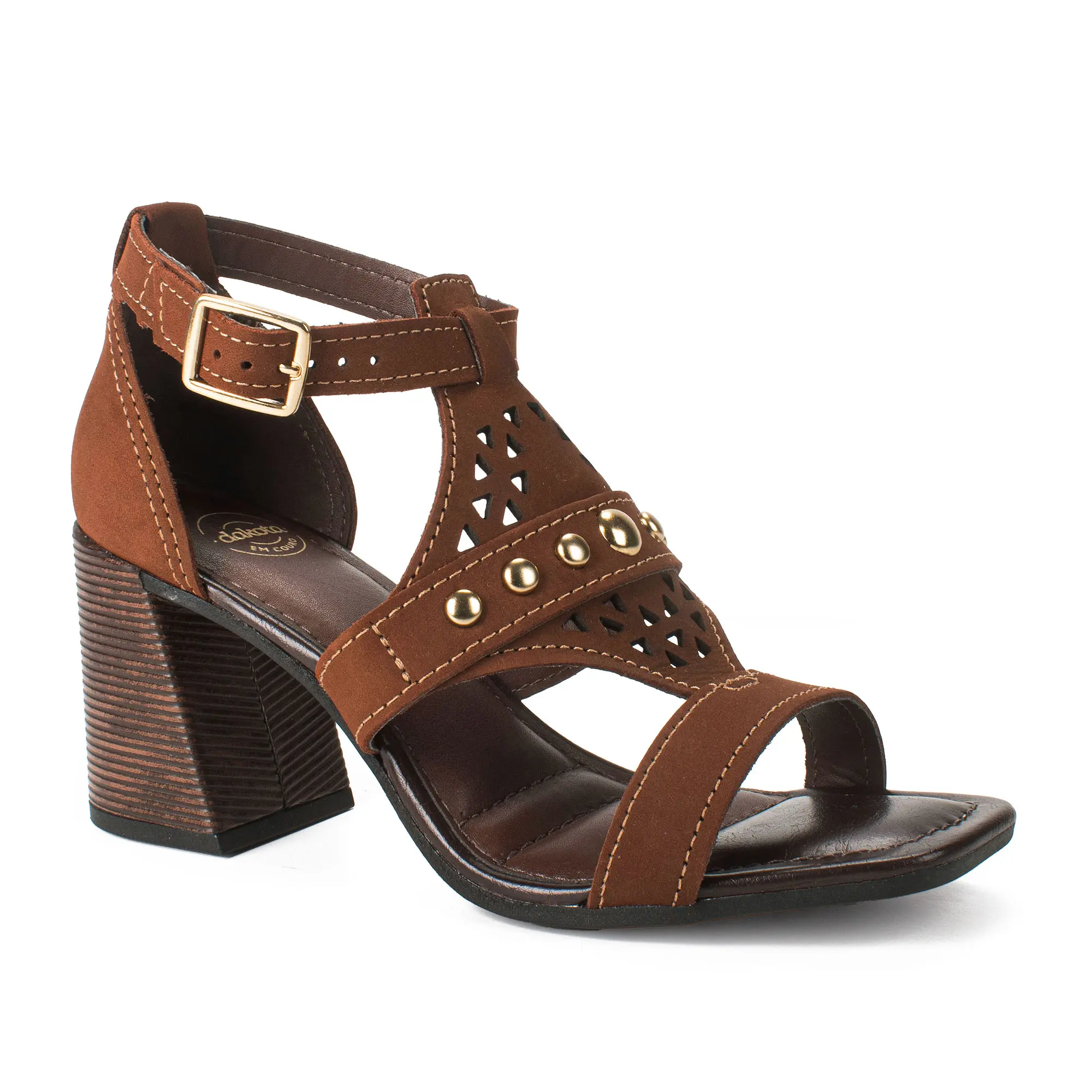 Sandália Dakota em Couro de Salto Bloco Marrom