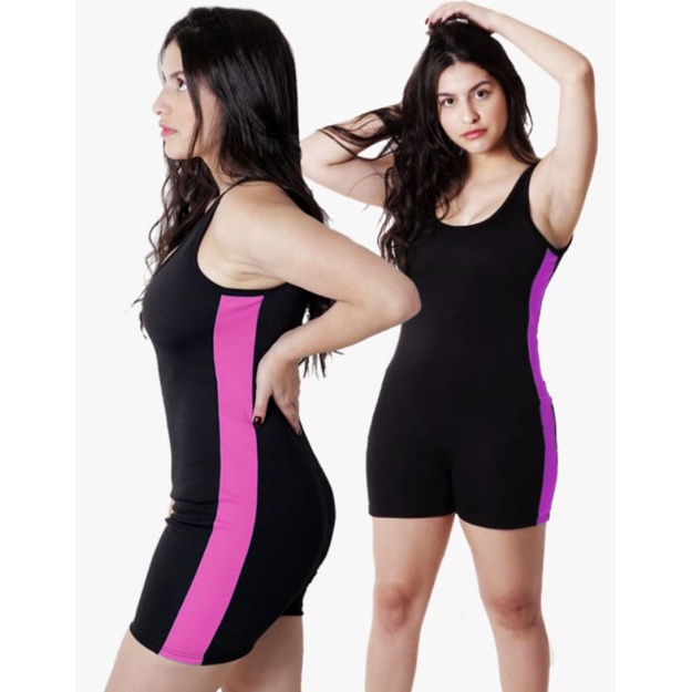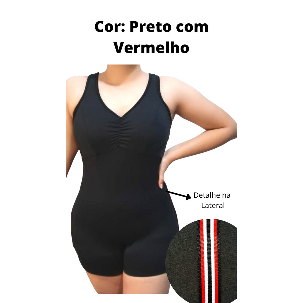 Maiô Feminino Macaquinho de Natação Adulto Hidroginástica Recorte Lateral Poliamida