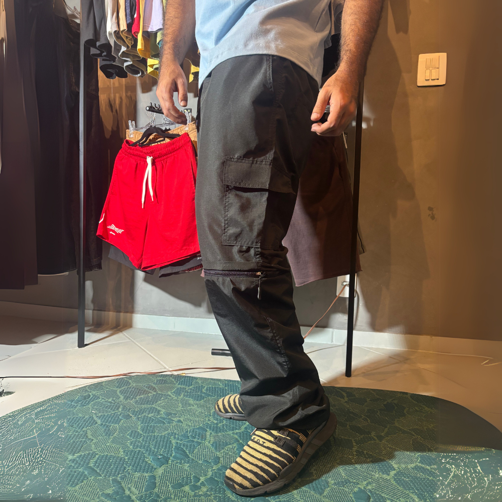 Calça Cargo Sintético pescador 2 em 1 | Vira Shorts | Streetwear Versátil