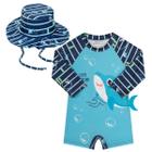 Roupa Proteção Solar Macacão Bebê Menino Praia Piscina Chapéu com Proteção UV - aymee