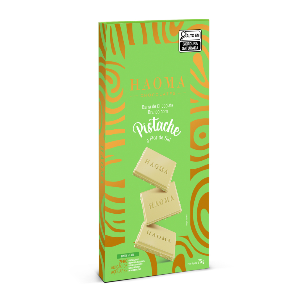 Barra De Chocolate Branco Pistache e Flor De Sal Zero Açúcar Haoma - 75g