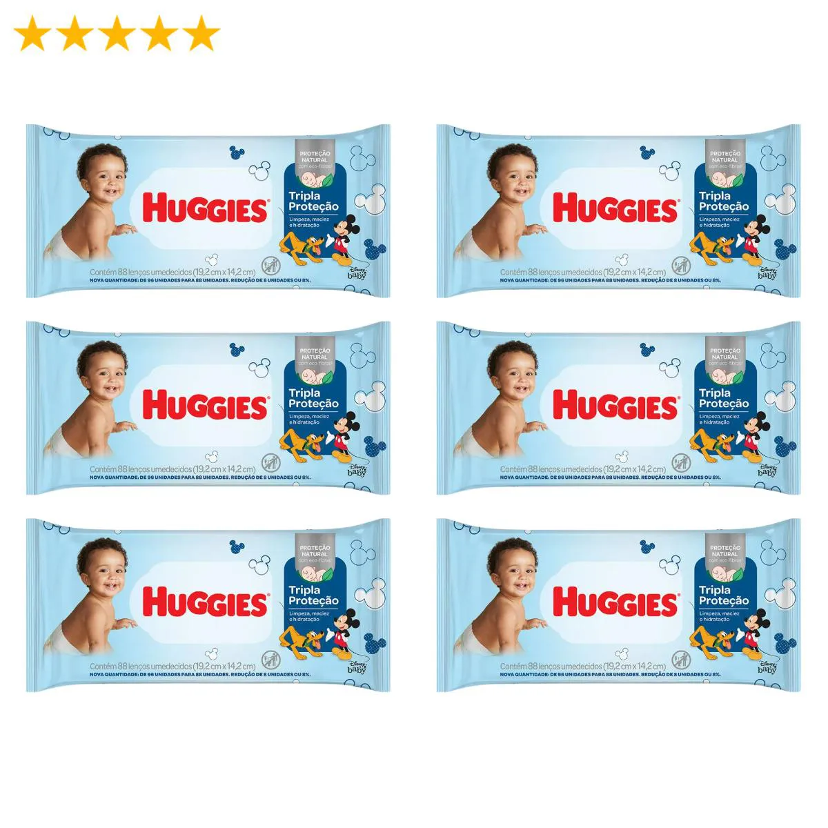 Kit Lenço Umedecido Huggies Tripla Proteção Disney Baby Hipoalergênico Sem Álcool Proteção Natural 6 Pacotes de 88 Unidades