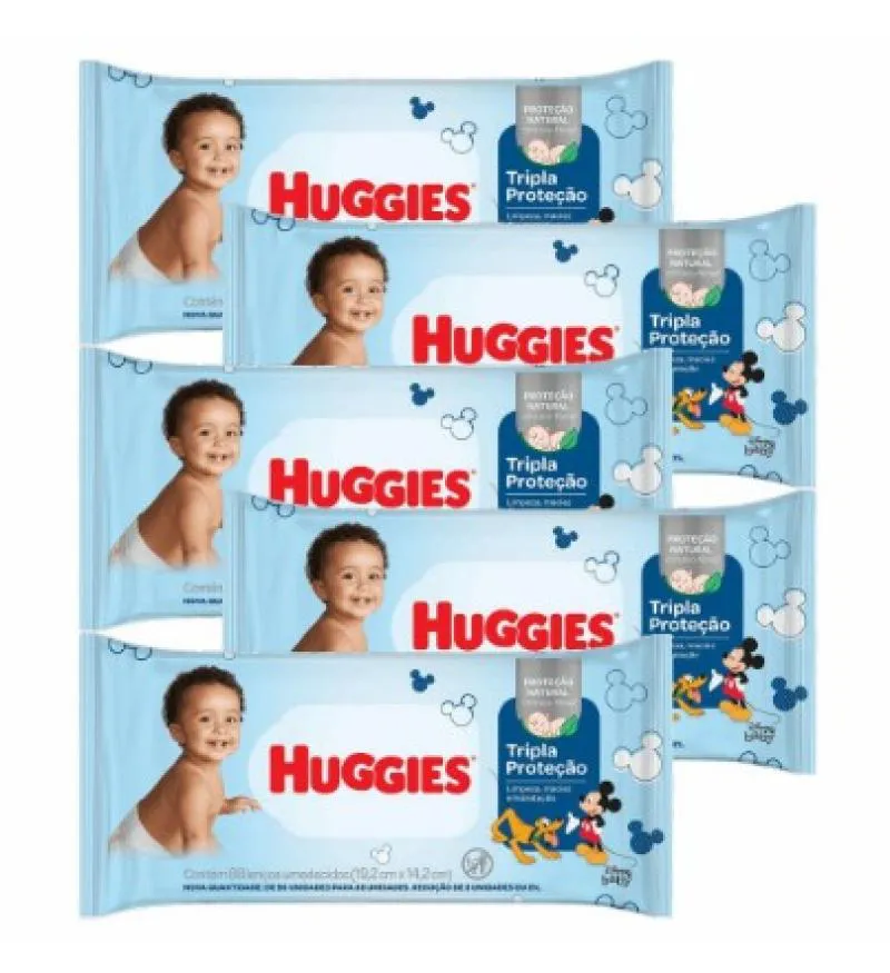 Kit Lenço Umedecido Huggies Tripla Proteção Disney Baby Hipoalergênico Sem Álcool 5 Pacotes de 88 Unidades