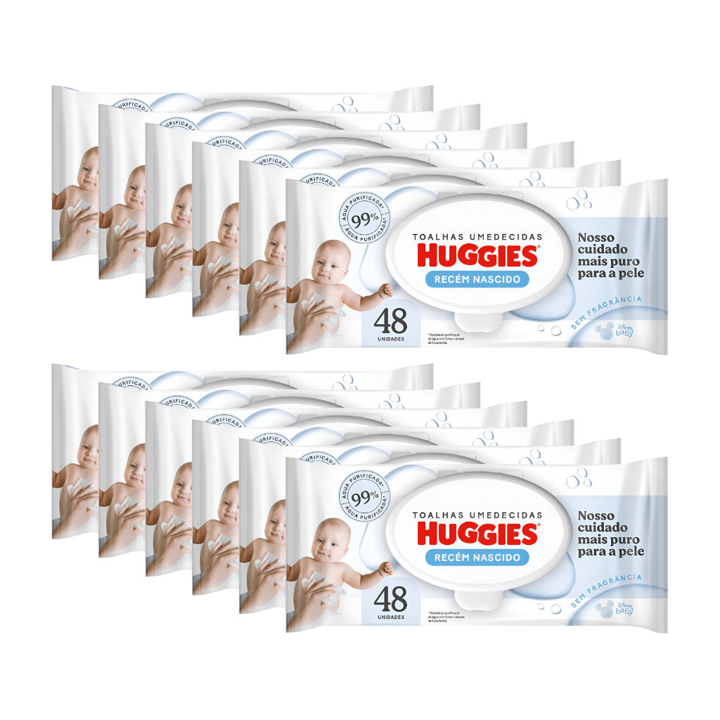 Kit 12 Lenço Umedecido Huggies Recém-Nascido Pacote 48un