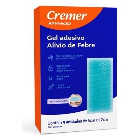 GEL ADESIVO PARA ALIVIO DA FEBRE PARA ADULTO E CRIANÇAS CREMER NOVIDADE 4 UNIDADES 5x12cm TIPO XO FEBRE