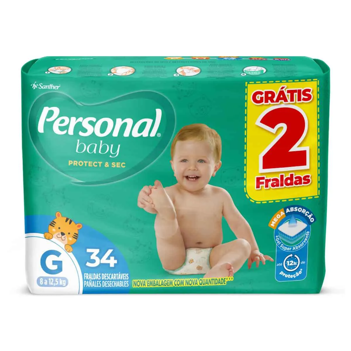 Fralda Personal Baby Protection & Sec G 34 unidades