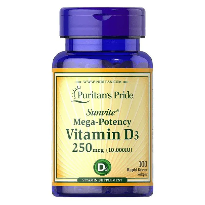 VITAMINA D3 250MCG 10000UI 100 CáPSULAS PURITAN'S PRIDE SEM Sabor